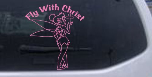 Tinkerbell Fly With Christ Christian Car Window Wall Laptop Decal Sticker -- Pink 22in X 24.6in Description