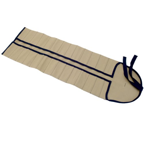Save your tools from being damaged and organize them too! Heavy canvas roll is stitched to hold 25 carving tools or chisels. Edges of the roll are sewn with cotton banding to prevent fraying. Roll features a large end flap with cotton tie that firmly closes the roll to prevent your tools from slipping out. For all edge tools under 12" in length. Made in USA.