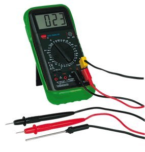 Of course, it also includes a dedicated transistor socket for NPN and PNP transistor testing, auto power off to save batteries, audible continuity and diode testing, and an oversized display. Sounds too good to be true for 40 bucks? We thought so too! That's why they're here! Comes complete with a professional rubber holster, standard test probes, temperature test probe, users manual, and a 9V battery.