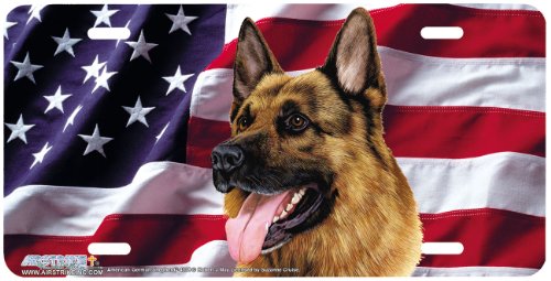 Price for American German Shepherd-Dog on American Flag-License Plate Car Auto Front Novelty Tag by Robert J May from Airstrike With Special Pomotions & eligible for FREE Super Saver Shipping