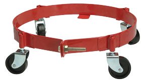 Suitable for use with 120 lb./16 Gal. containers. Adjustable clamping (13" - 14.25"). Complete with 4 removable phenolic casters.