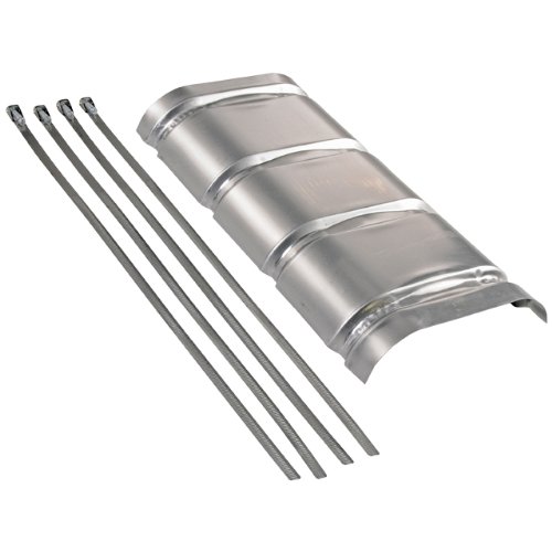 Pre-formed alumInum heat shield designed to mount on the muffler for added protection In reducIng heat radiated from mufflers and also reducIng Interior noise. Attaches easily with Included straps.