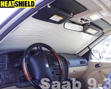 - PRODUCT DESCRIPTION: HeatShield - Advanced Windshield Reflector HeatShield is an automotive windshield reflector, "sun shade," or "sun visor," custom designed to fit the shape of each car model's windshield. The HeatShield material is simple and unique. A special metallized polyester film, laminated to a thin layer of closed-cell foam, with a clear polyester film back. HeatShields are custom cut using the latest in computer-aided cutting technology. Then they are sewn around the edge with a cloth binding. So HeatShields are reflective, insulating and custom fit for every car. INSTALLATION HeatShield installation is easy and quick. Lay the Heat Shield across the dash. Lift up to the windshield. Drop the sunvisors for support HeatShield is stiff enough to be supported by the sunvisors alone, but it is flexible enough to be bent around the mirror. Once installed, HeatShield will reduce the interior temperature at the dashboard by as much as 40 deg. F. (25 deg. C.) HeatShields are simple to use, but they are just as easy to store! PRODUCT STORAGE When not in use, store your HeatShield like this: Lift sunvisors and pull HeatShield down. Roll up from end to end. Wrap the attached Velcro strap