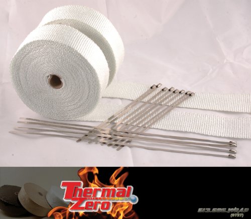 Special Price! for High Temperature Header/Exhaust Wrap Kit: 2 Rolls White 1/16" X 2" X 50' with a Stainless Ties Kit- Thermal Zero With Special Pomotions Fast Shipping