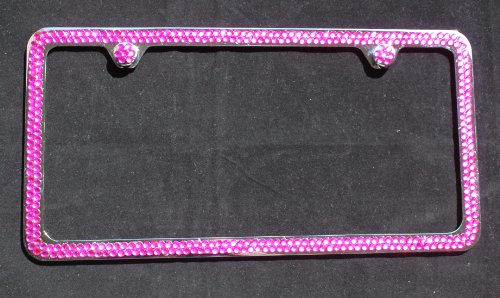 Special Price! for 2 Rows HOT PINK Diamond Rhinestone Crystal Chrome License Plate Frame & 2 Screw Caps With Special Pomotions Fast Shipping
