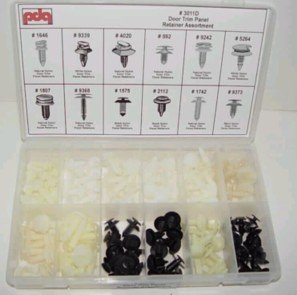 Contains 12 popular doom trim clips, for most GM, Ford, AMC model cars and trucks. Total 120 pieces.