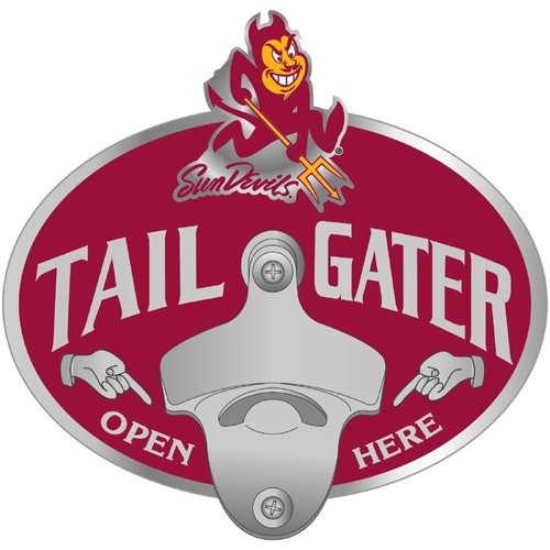Our fully cast tailgater hitch cover features a functional bottle opener and Arizona St. Sun Devils emblem with enameled finish.